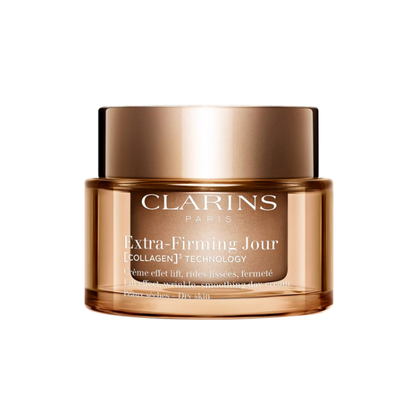 Clarins repousse encore les limites de la connaissance sur le collagène avec une innovation majeure dans sa nouvelle gamme Extra-Firming maintenant rechargeable.* Extra-Firming Jour, la crème de jour anti-âge qui augmente votre capital collagène pour un visage plus ferme, plus lisse, visiblement rajeuni. La peau est visiblement plus ferme dès 7 jours.** Pour améliorer la fermeté de la peau, Clarins crée une innovation exclusive [COLLAGEN]³ TECHNOLOGY ; un puissant trio d’actifs pro-collagène qui agit contre la perte de fermeté de la peau. Ce complexe innovant cible la quantité, la qualité et la structure des fibres de collagène pour reconstituer le capital collagène.